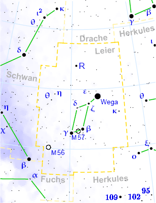 Bei kleiner Vergrößerung ein Nebelfleckchen mit hellem Kern. Bei ansteigender Vergrößerung sehe ich dann M 56 granuliert und bei den hohen Vergrößerungen wird er schön aufgelöst. Ich erkenne, dass M 56 kein dominierendes helles Zentrum aufweist und auch nicht so stark konzentriert ist.
