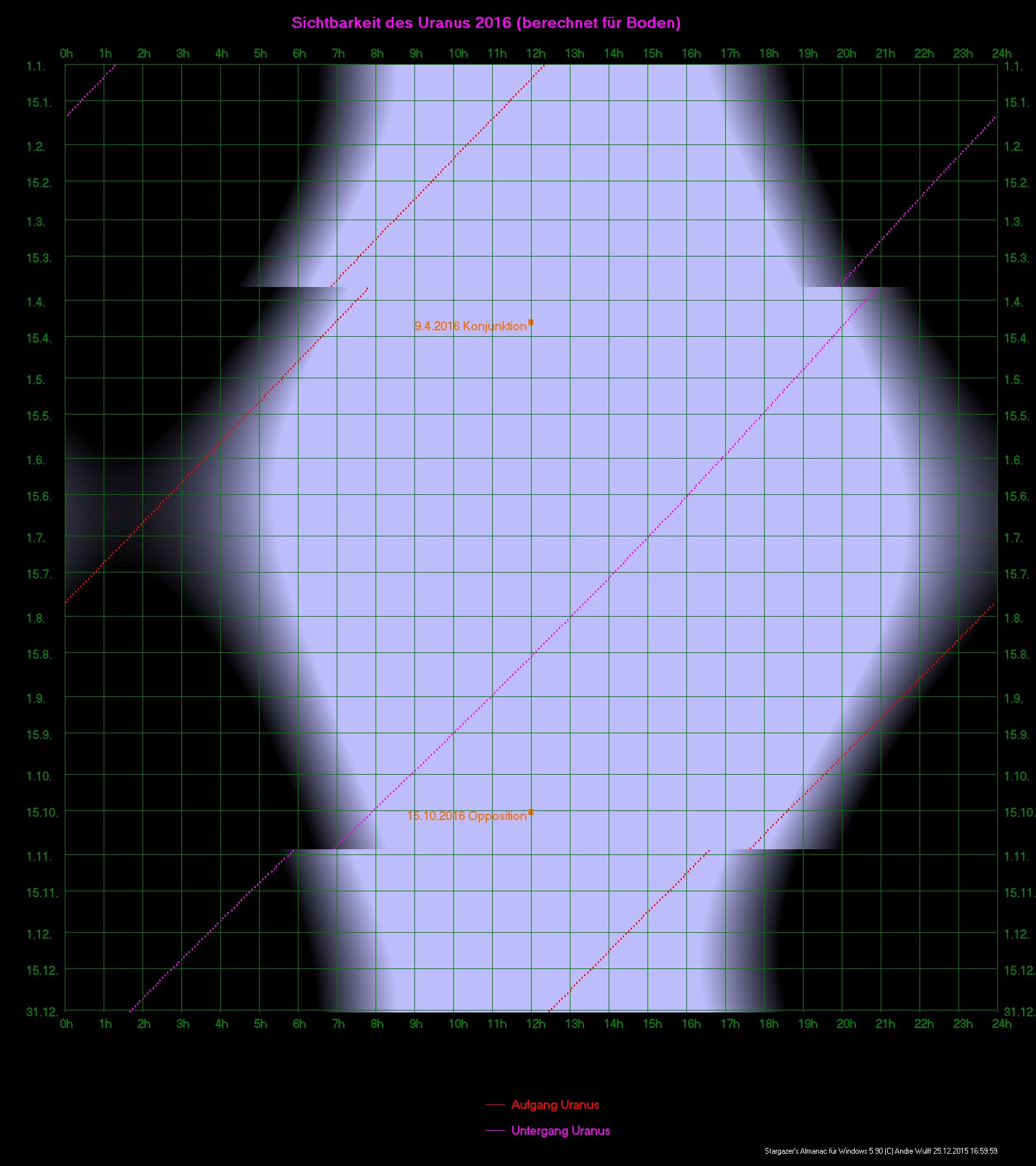 Grafische lnformationen zur Sichtbarkeit des Planeten mit Ereignisangaben für das gesamte Beobachtungsjahr Grafik hier abrufen