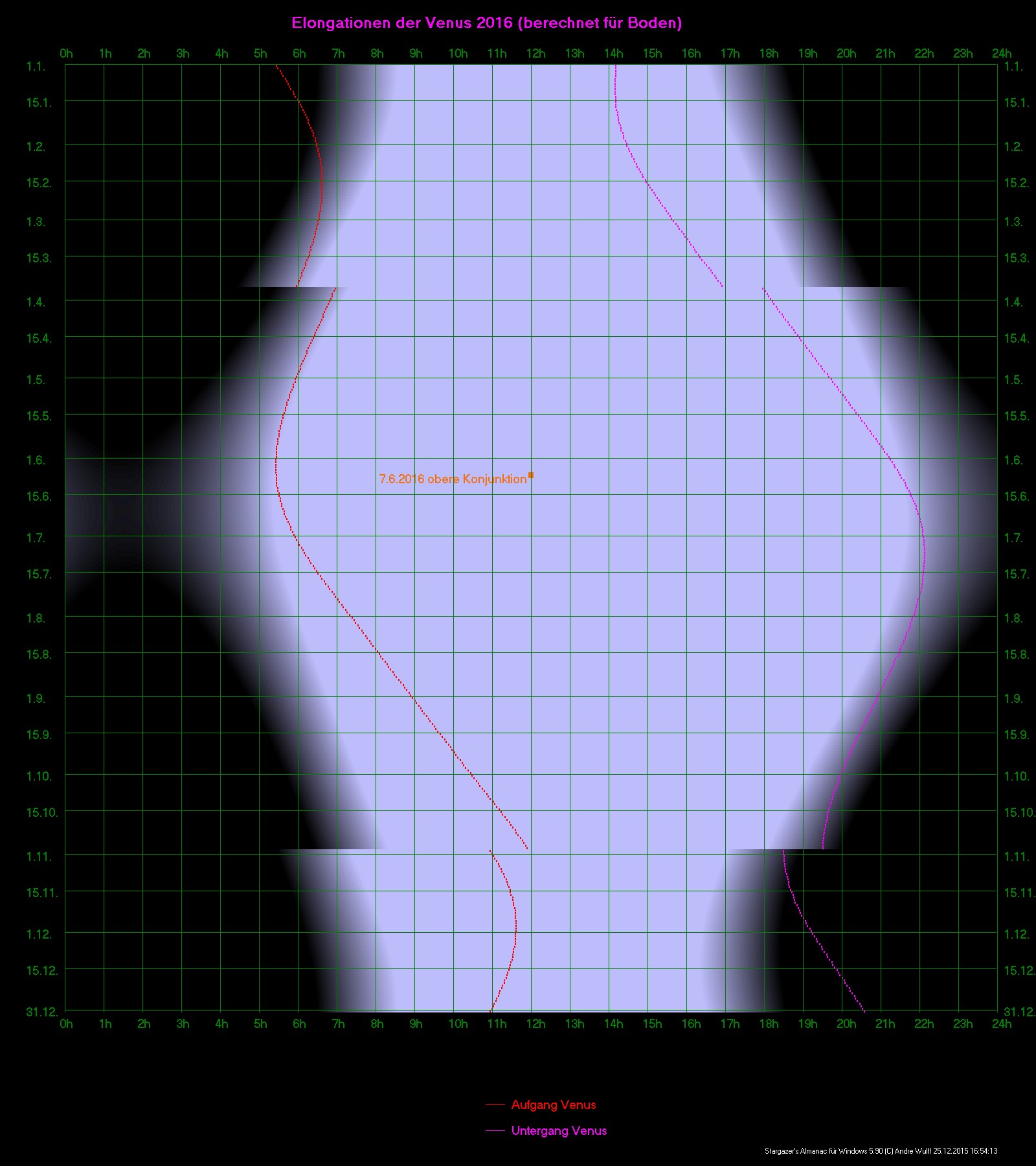 Die Venus ist immer das hellste sternähnliche Objekt, wenn sie über dem Horizont steht. Sie erscheint dem blossen Auge als sehr heller Stern, der entweder einige Monate am Morgen oder am Abend zu sehen ist. Ähnlich wie unser Mond zeigt uns auch die Venus verschiedene Phasen. Bereits im Fernglas kann man diese Phasen beobachten, wenn man das Fernglas mit einem Stativ zusammen verwendet. Wenn einem kein Stativ zur Verfügung steht, sollte man aber mindestens für einen festen Stand sorgen und das Fernglas möglichst irgendwo aufstützen. Nur so kann man die Venusphasen erkennen. Wenn das Bild jedoch hin und her wackelt, hat man keine Chance die Phasengestalt wirklich zu erkennen. Sichtbarkeitsangaben findet man in Jahrbüchern, wie z.B. dem Kosmos Himmelsjahr. Im Teleskop sind die Phasenänderungen des Planeten Venus einfacher zu erkennen. Die Oberfläche der Venus kann unter ihren Wolken nicht gesehen werden